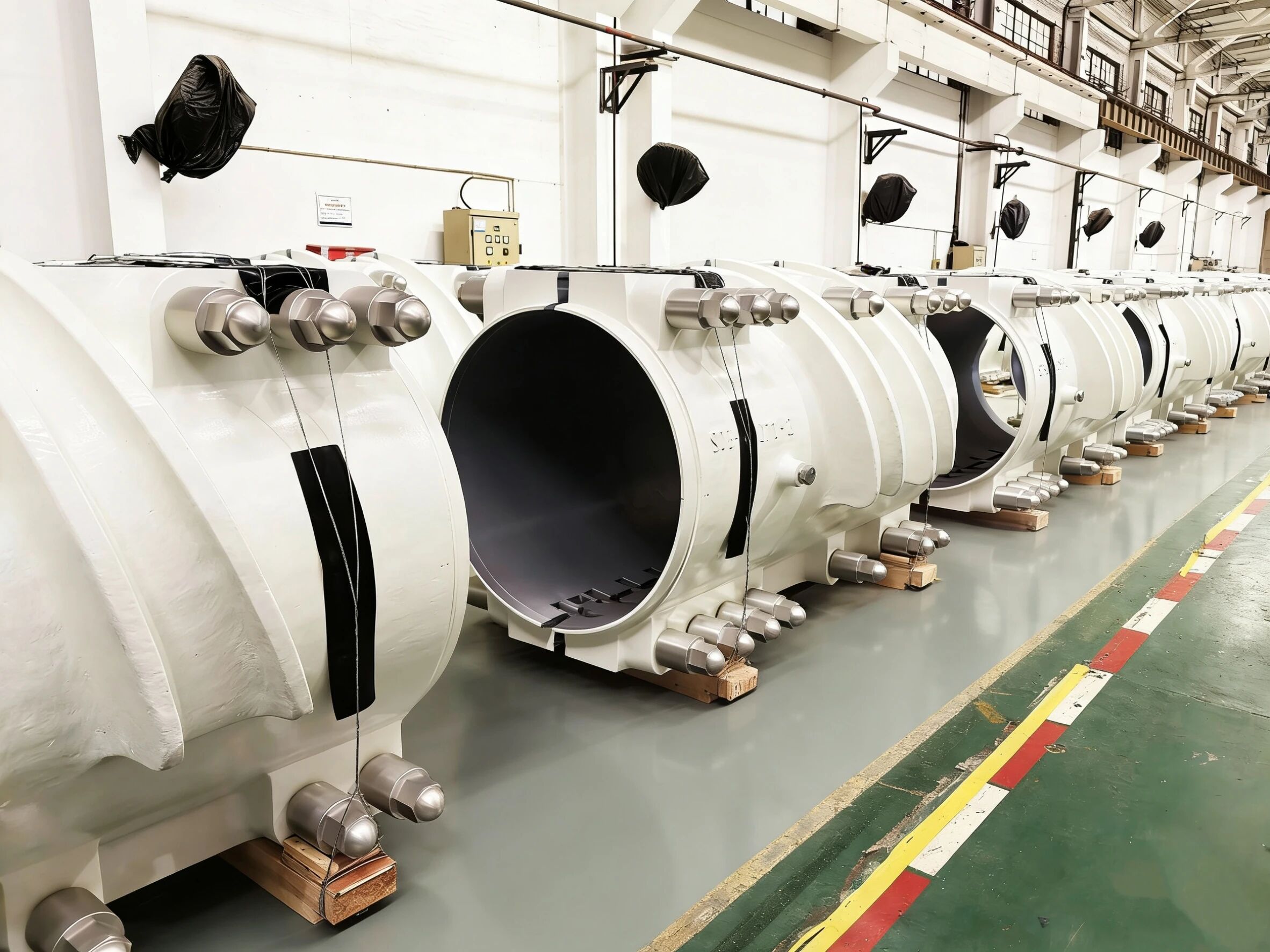 公司承接该大桥主索鞍4套,散索鞍4套,索夹9种共计288套,缆套12套。其中主索鞍鞍体单重170t,散索鞍鞍体单重125t,均采用铸焊式结构;索夹主要为骑跨式,采用铸造结构,索夹SJ1处采用智能监控设备,能实时监控索夹螺杆夹紧力,防止其夹紧力过小发生滑移。为确保该项目保质按期交付,公司组建以工程技术管理人员与各类技术工人为成员的项目组,先后投入大型数控落地镗铣床等各型加工设备,在2024年9月与10月,分别交付4套主索鞍与4套散索鞍,在2025年5月与11月,分别交付288套索夹与12套缆套,所有产品均提前交付客户,创下索鞍索夹交付最快记录,充分展示了公司强劲的生产制造能力与技术创新实力,赢得了客户一致好评。