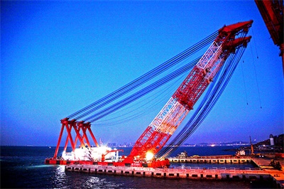 大型浮式起重机也称为起重船或浮吊,可采用双臂架结构,起重量可达3600吨,起升高度可达110米,广泛应用于沿海及近海的大型桥梁和设备的吊运、安装及打捞作业等。该类起重机起重量大、起升高度高,操作方便、灵活、准确,维修方便,能满足施工海域风大、浪高、水深、流急等恶劣海况的要求,技术达到国内领先水平。