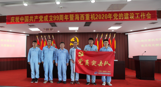 武汉船机海西重机党委对党员攻关小组进行现场授旗,号召全体党员以优良的工作作风,敢于啃硬骨头,越是艰险越向前的精神,主动推进党员攻关项目开展,全力确保项目交付目标如期完成。