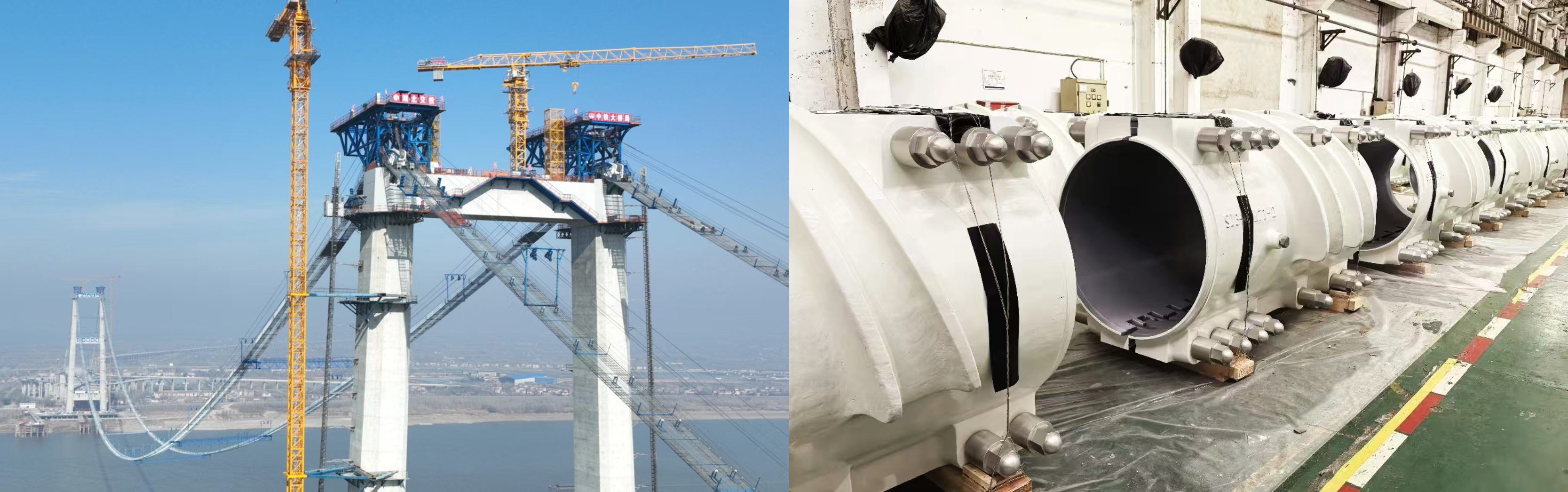 双柳长江大桥是湖北省第40座,武汉市第12座长江大桥。大桥全长1630米,是双塔单跨简支梁悬索桥,主跨1430m,北岸位于武汉市新洲区,南岸位于鄂州市华容区,是武汉都市圈和“武鄂黄黄”一体化发展的重要交通支撑。武汉船机公司共承制双柳长江大桥4套主鞍、4套散鞍、288套索夹。其中索鞍于2024年9月全部发往建桥现场。