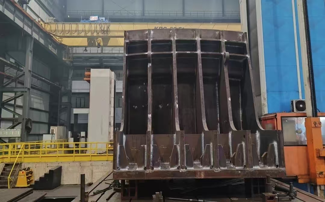 燕矶长江大桥并列式主索鞍结构与焊接式索夹:湖北燕矶长江大桥主跨1860米,是世界最大跨度四主缆悬索桥,创新采用并列式主索鞍结构。武汉船机参与索鞍索夹课题研究,针对并列式主索鞍滑动副稳定性控制要求高的特点,与设计院合作首次创新采用了高承压滑板材料,并优化了滑动副构造。针对目前常规桥梁采用的铸钢件索夹壁厚大、重量大,铸造易产生缺陷的难题,武汉船机与设计院等相关单位共同研究,创新完成高强度焊接式索夹研发工作,并开展拉力、疲劳载荷试验验证,实现了索鞍索夹高强度与轻量化,为悬索桥索鞍索夹结构形式设计提供了新选择。